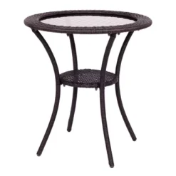 Costway Round Rattan Wicker Coffee Table Glass Top Steel Frame Patio Furni W/Lower Shelf