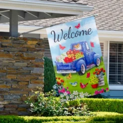 Northlight Welcome Blue Pickup Truck With Flowers Outdoor House Flag 28″ X 40″