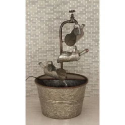 - •This decorative garden planter showcases a tall pitcher shape with a rusted-style handle
