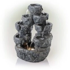 - VERSATILE FOUNTAIN DÉCOR WITH LED LIGHTS: Contemporary cascading water fountain with natural look and white LED lights will provide a tranquil and soothing addition to your indoor or outdoor living space