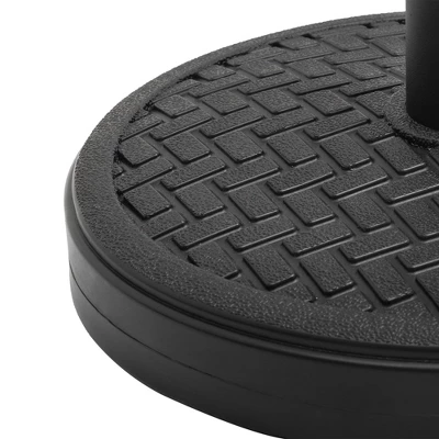 This black finish round umbrella base is filled with cement, this umbrella base does not need to be injected with water or sand, it is durable and weather resistant with a long service life