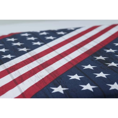 This set of two outdoor throw pillows is accented with a distressed Americana diagonal striped pattern. The printed stars and stripes in patriotic colors of red, white and blue, give this pattern a casual feel for any outdoor decor. Additional features of these outdoor throw pillows include white contrast welt cords for a clean finish and recycled polyester fiber fill with sewn seam closures. Also suitable for indoor use.