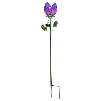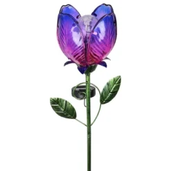 An illuminating Purple Solar Glass Flower Stake adds a touch of romance to your garden! Beautifully designed, this flower has individual glass petals, hand painted metal leaves, and a solar glass crackle ball at its center which automatically glows at dusk. Grace your garden with warmth and charm all year long.