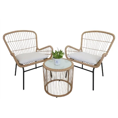 • · [Great Quality and Value] The wicker chairs and table are wowen of strong PE rattan, either healthy and environmental friendly, steel legs can effictively bear weight. Table top is made of tempered glass, which has higher stablity and safety than other glass, please rest assured to use