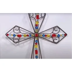 Enjoy the beauty of an intricately designed, jeweled cross in the garden, yard, or even a large planter. Crosses can suggest faith, transition, balance, unity, temperance, hope and life making it a perfect addition to any tranquil and peaceful garden. Made of durable, weather resistant metal enhanced with beautiful multi-colored gems, which catch the sun and light. Comes complete with a 2-piece garden stake measuring 28″ when assembled or just use one piece for a shorter stake. Simple assembly, just twist the 3 pieces together (not tools required).