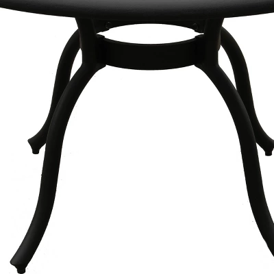 - Modern Outdoor Mesh Aluminum 48-in Black Round Patio Dining Table dimensions are: 48″ L x 48″ W x 29″ H, 42lbs