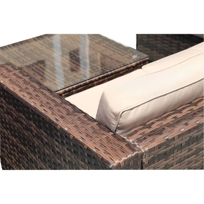 - √【Sturdy PE Rattan&High Quality Cushion】Crafted with high quality PE rattan wicker and a strong powder-coated rust-resistant steel frame, all-weather resistant synthetic resin wicker are enough strong to withstand all weather variations. Water-repllement cushions are easy to clean.The upgraded fabric material brings better splash proof ability to the cushion. All cushions adopt a zipper design, which is more convenient to remove and replace another new cushion cover.
