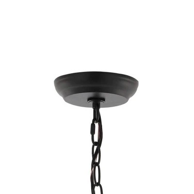 - The durable metal shade has a modern black finish, with clear glass panes to protect the LED bulb