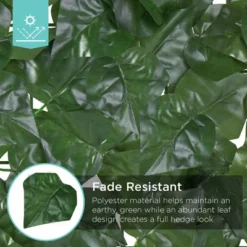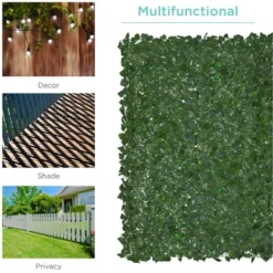 Envelop your yard with elegant ivy and ensure the privacy you need with this durable, fade-resistant screen. Decorative & multifunctional, it helps create an appealing, natural ambiance that keeps your secret garden just that – a secret. Fade-resistant polyester material helps maintain an earthy green, while an abundant leaf design creates a full hedge look. Plus, an easy installation means you can attach screen to fenching using zip ties (not included). Its sturdy design includes a mesh support that makes the hedge attachable to multiple surfaces, like wood and iron, and keeps a stable hold, even in windy conditions. Densely packed leaves provide shade from sunlight while still allowing air to flow through. The lightweight design of this outdoor decor makes it easy to move around and embellish where you need it. Product dimensions for SKY5832 are 96 x 72″. SKY1410 is 94″ x 39″, and SKY1411 is 94″ x 59″.”