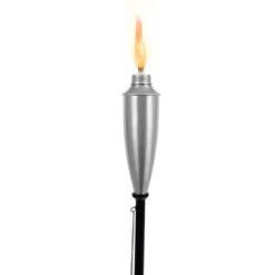 - WEATHER RESISTANT: torches are electroplated with satin silver for extra protection against wear, corrosion and weather. Our torches will last longer than typical bamboo tiki torches. Each torch features a wick cover/snuffer that protects the wick from the elements