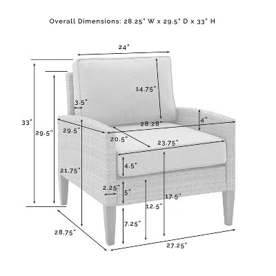 - 4.5″ thick seat cushion and 3.5″ thick back cushion