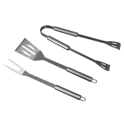 - Tool set includes stainless steel spatula, stainless steel tongs, and stainless steel grilling fork, the necessities any backyard barbecue needs to succeed