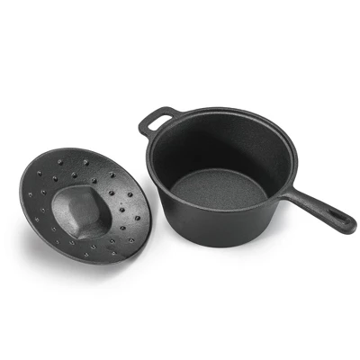 This COMMERCIAL CHEF cast iron saucepan with lid will enhance meals and delight dinner guests each and every time. With dimensions of 13.1″ x 8.1″ x 4″ and a weight of 7.7 lbs., this small saucepan is ideal for dishes like risotto, stews, soups, vegetables, eggs, and so much more. Use your new cast iron pan with lid on a gas, electric, or induction oven. Even use over a grill or roaring campfire for authentic outdoor campfire cooking! The pre-seasoned cast iron seasoning on this cast iron skillet with cover ensures even heat distribution. It’s well-oiled for easy release cooking and helps prevent from rusting. When it comes to saucepans and sauce pan sets, COMMERCIAL CHEF has you covered with quality and durable cast iron construction that keep your dishes warm. You can even hang in your kitchen thanks to the convenient loop handle. The self-basting cast iron lid collects moisture and redirects it to the food inside the pan. Bring life to your meals with authentic COMMERCIAL CHEF cast iron cookware.