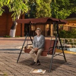 Our two Seats Swing Chair Will Be A Excellent Addition To Any Outdoor Living Space, Such As Garden, Yard, Balcony And Pool Side. This Swing Chair Provides two Comfortable Seats And You Can Enjoy The Outdoor Beautiful Scenery With Your Partner. With A Top Canopy, This Item Can Protect You From Ultraviolet Ray And Drizzle. Steel Frame Is Solid And Durable, You Can Enjoy Using This Swing Chair For A Long Time. Seat And Back Cushion Can Add The Comfort When You Seating On It. Do Not Hesitate To Buy One To Enjoy Your Outdoor Scenery