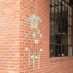 Rustic Sea Green Turtles wind chime is the perfect addition to any outdoor or indoor setting. Enjoy the calming tones of the high-quality Iron Metal wind chimes as the wind rushes through the harmonic frame. With a natural/minimalist design, these wind chimes are perfect for native, copper, rustic, boho, spiritual, and antique themed decor. Approx 31″H, these wind chimes make an excellent gift for anyone who loves windchimes. Create a beautiful outdoor oasis with VP Home’s various designs of soothing hanging wind chimes!