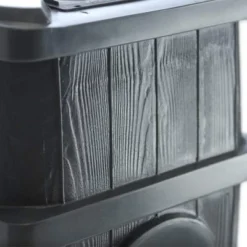 With the appearance of a traditional wooden barrel, the slim-line design of the FCMP Outdoor wood grain rain barrel makes it perfect for locations where a larger barrel would be intrusive. The shallower depth and flat back allow for easy installation and placement of the downspout while the safety rib in the top of the barrel keeps it child and pet safe. Spigots on the side of the barrel allow you to connect multiple rain catcher barrels in series for easy expansion of your rainwater storage capacity. The corrosion-proof debris screen keeps out debris to keep the water clear.Place them around your home to catch fresh chlorine-free water as it pours from your downspouts – water that would otherwise make its way into storm sewers only to be wasted. Rain barrels not only save you money but lessen the strain on water resources. This barrel is not suitable for freezing temperatures. It must be drained and flipped to avoid ice damage or it will void the warranty. Includes debris screen, garden hose, shut-off thumb valve, hanging hose clip, overflow hose, and linking kit.This FCMP Outdoor wood grain rain barrel is perfect for all your rain collection needs.