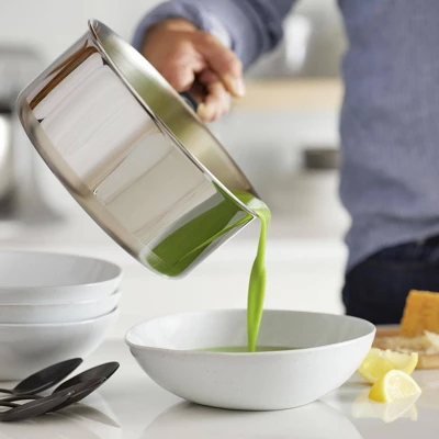 - LASTING CONSTRUCTION: Medium saucepan is crafted from heavy-duty 5-ply clad stainless steel and features a unique brushed base to hide wear and tear for long-lasting durability