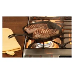With this grill pan, you get mouth-watering grill marks and fantastic seared flavor at home. Crafted in America with iron and oil, Lodge Cast Iron’s naturally seasoned cooking surface is ready for all your grilling adventures. Experience excellent heat distribution and retention for consistent, even cooking. Seasoned and ready to use. Plus, protect your hands from the heat up to 550 degrees F with the deluxe silicone handle holder!