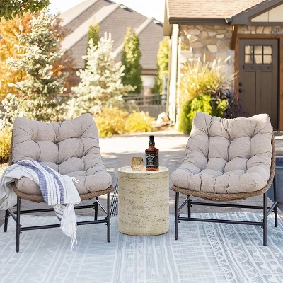 Look no further than this contemporary-style round side table for beauty and a minimalistic design. The beige and brown finish is purposefully distressed that blends with and complements a variety of color schemes and styles. Plus, it is small enough that it won’t overwhelm tight spaces. Perfect as a place for your plant to rest or an eye-catching end table for your indoor or outdoor ensemble. Featuring a pillar design, the round table is made with lightweight and high-quality magnesium oxide material and arrives ready to use. This contemporary piece is a seamless addition to any space, whether you add it to your patio furniture or place it next to your sofa.