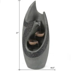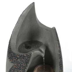 The beautiful mixture of complementing gray finish with a brown and gray faux pebble border makes this water feature a wonderful focal point for your outdoor living space. The curvy design will give your space dimension and depth. The electrical fountain pump recirculates the water and powers two lovely LED lights inside the fountain. Enjoy the relaxing sound of the cascading water while the light gently reflects off the fountain and waterfall. The fountain is crafted using cement material that is made for outdoor use. Water fountains bring a meditative element to your space. The fountain is easy to set up on your patio, porch, or deck.