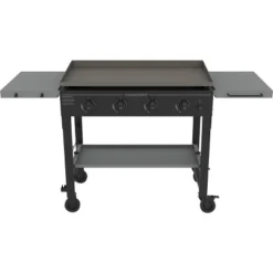 Your next family feast just got easier with this griddle cart. With 48,000 BTU’s of heat output and 732 square inches of cooking space for quick, controlled cooking. The strong steel frame gives you peace of mind to know this grill is sturdy and durable. Easy to clean flat griddle top makes clean-up a walk in the park. Take your worries away by using MegaMaster! Bonus stainless steel spatula included.