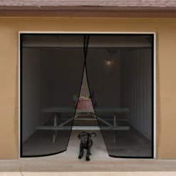 - Enjoy the relaxing feel of the great outdoors free of flying insects with this magnetic mesh screen door attached to your two-door garage