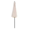 Enjoy tons of fresh air this summer without having to sit in the hot sun with our 8.5-foot traditional style wooden market umbrella. Ideal for covering a 48-inch or four-person dining set. Features sturdy wood frame, ribs, and pole that are built to last a lifetime. The double-wheel pulley allows for ease of use. Features:Umbrella shape: octagon Canopy color: burgundyFrame and pole color: wood Diameter of open umbrella: 9’Height: 8′ Pole diameter: 1.5″ (38mm) Lift: double wheel pulley 8 ribs Plastic finial top Material(s): 160 gram polyester canopy/wood pole and ribs/plasticNote: Umbrella only, base is not included