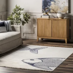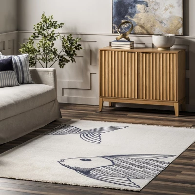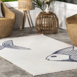 Whoever said beautiful floor accents are only for inside the home hasn’t yet met this coastal indoor/outdoor rug. Designed to stand up to the elements while adding a modern charm with its nautical fish design. This piece is so versatile that you might find yourself not only using it on your patio, but in your living or dining room as well! It’s time to create your own oasis with our easy to care for and pet-friendly area rugs.