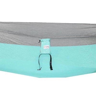 This outdoor camping hammock bed is made from light, breathable nylon that is comfortable to lay in; this hammock is also roomy enough for two people to stretch out and relax in so that you can have a good night rest.