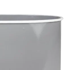 Inspired by traditional plant boxes, but with a flair. Elevated by four white ball feet, this oblong planter is characterized by a clean, high gloss gray lacquered finish and accented by a clean white rim. The neutral coloration offers a simple yet beautiful base for your plants, or for use as a decorative storage bin. Great size for gardening tools, or bathroom essentials.