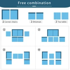 Pieces Included: 2 Table, 2 Corner Sofas, 2 Ottomans, 2 Back Pillows and 4 Cushions.(Color pillows not included.)