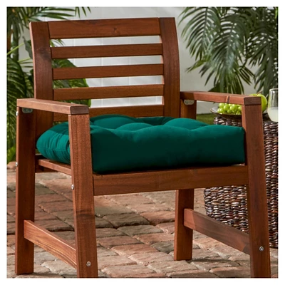 Make a style statement outdoors with this Kensington Garden Outdoor Dining Chair Cushion. Covered with durable, high-performance outdoor Sunbrella fabric, it resists stains, fading in sunlight and offers ultimate cleanability. Seat cushion fits most standard outdoor furniture. The cushion’s sewn circle tack construction creates secure compartments to prevent cushion fill from shifting, while string ties fasten your cushion securely to your outdoor furniture. Each cushion features an overstuffed construction for extra comfort and longevity, with a soft polyfiber fill made from 100% recycled, post-consumer plastic bottles. Available in a variety of colors to enhance your outdoor decor.