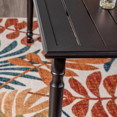 Heavy-duty steel frames are powder-coated for rust-resistance and lasting beauty. The modern slatted tabletop and elegant legs are sure to add an elevated aesthetic to fit your outdoor space.