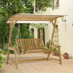 Swing through the summer with Outsunny. This rustic swing bench seats two and brings natural wooden flair to your backyard, balcony, patio, or porch. Sway back and forth in the breeze. It’s made of solid pine wood sealed with oil, protecting it from water and keeping the wood’s natural beauty. The wood is crafted into quick-drying slats so your swing can be ready, whatever the weather. It’s canopy keeps out light rain and shades away sunburns. So bring a friend; it’s going to be a great summer.