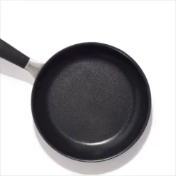 The 8-in OXO Good Grips Non-Stick Frying Pan is perfect for sautéing veggies and making eggs. The pan features a three-layer, German-engineered non-stick coating that provides effortless performance while using less oil and delivers quick and easy cleanup. Our pan’s scratch-resistant, hard-anodized body heats faster and more evenly than traditional aluminum, and the silicone-wrapped stainless steel handle helps keep cooking comfortable. Hand wash. Oven safe up to 390°F/200°C..