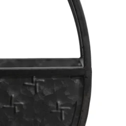 Showcase a stunning plant inside this spectacular half circle wall planter and it will be a statement piece. Use as a refresh to a wreath on your door, or to brighten up a dull wall in your home. It is sure to enhance your modern farmhouse with its black galvanized metal paired with a textural embossed plus pattern that stretches across the entire front. This versatile piece works equally well for fragrant herbs, small flowers, or something leafier.