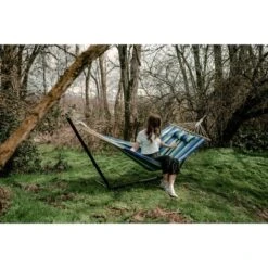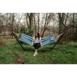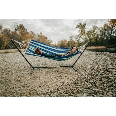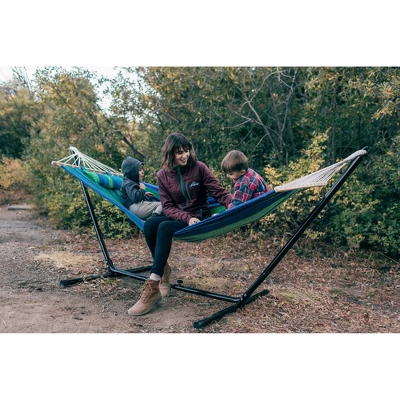 Take a trip to the tropics in your backyard with the Cayman Hammock. Sturdy cotton construction provides a cool, comfortable lounging surface. A built-in pillow headrest provides an added degree of comfort. The durable included stand is simple to set up, so you can get right to your lounging.