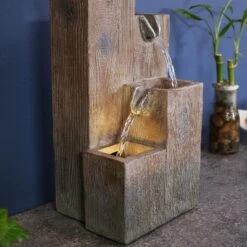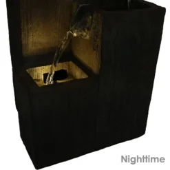 • RELAXING CONTEMPORARY WATERFALL: This fountain is constructed of durable and easy-to-maintain polyresin material which replicates the color and texture of real wood. The built-in LED light has 20 lumens and a warm white color with color temperature of 2500 to 3000 Kelvin.