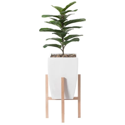 Plant your flowers in this Square fiberglass pot sitting atop a leggy wood base for a contemporary look. Could also be used as a vase. Ideal to use in entryways, doorways, this planter will welcome botanical life into any area placed. Decorate your home while adding a modern touch!