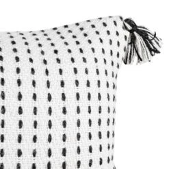 A modern take on a dash pattern from Foreside Home & Garden. The bold black and white contrasting yarns create a clean, modern look, with a solid woven back. Multi-colored corner tassels will speak to your boho aesthetic. Suitable for both indoors and out and made of recycled plastic bottles with quality you can feel. Hand-woven by artisans in India.