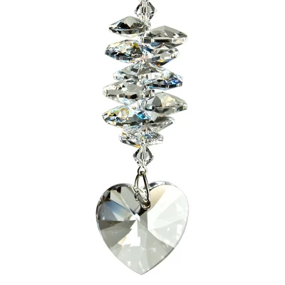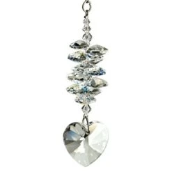 This stunning cluster of clear crystals lead the eye to the jewel-like crystal heart drop. This sun catcher sparkles and shines in the light, spreading rainbows across the wall. Works equally well as an every day or Christmas /holiday ornament. Hang it in your office or dorm room it’s especially beautiful when hanging in the window or in front of a light.. Not boxed, instead it comes with a sheer organza gift bag.. Recommended for indoor use.. . Woodstock Crystal Suncatchers they do for light what our chimes do for sound.