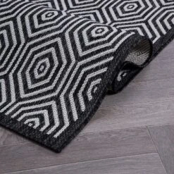 Liven up your indoor or outdoor décor with this contemporary flatwoven rug. It features a modern geometric design and vibrant colors.It is easy to maintain by rinsing with a garden hose with soapy water and air drying.For indoor or outdoor use. This collection offers area rugs that are suitable for all indoor/outdoor spaces.