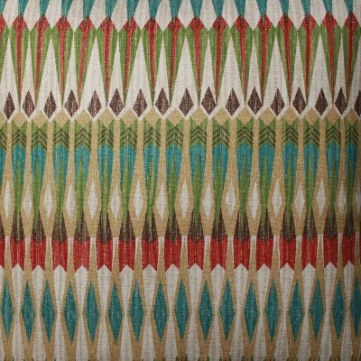 This artsy set of two tufted chair pads with a Midwestern design brings to mind long summers and bright classic shades. Natural colored linen-look fabric is covered in varying rows of contrasting arrows in shades of dark red, teal, green and brown. Easily accent any room or coordinate this pattern with decor in complementary shades for a new look with a relaxed feel. Additional features of these tufted chair pads include 14-inch ties to secure the cushions to your furniture and recycled polyester fiber fill with sewn seam closures.